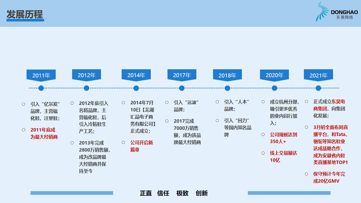 蕪湖東昊網(wǎng)絡(luò)科技有限公司,成立于 2014 年,是一家以互聯(lián)網(wǎng)平臺(tái)銷(xiāo)售為核心的電子商務(wù)運(yùn)營(yíng)商,公司成立以來(lái),始終專(zhuān)注于休閑運(yùn)動(dòng)鞋的互聯(lián)網(wǎng)銷(xiāo)售業(yè)務(wù),產(chǎn)品線覆蓋硫化鞋、注塑鞋、冷粘鞋,在互聯(lián)網(wǎng)二級(jí)類(lèi)目單品牌排名前三,綜合成績(jī)排名TOP1;